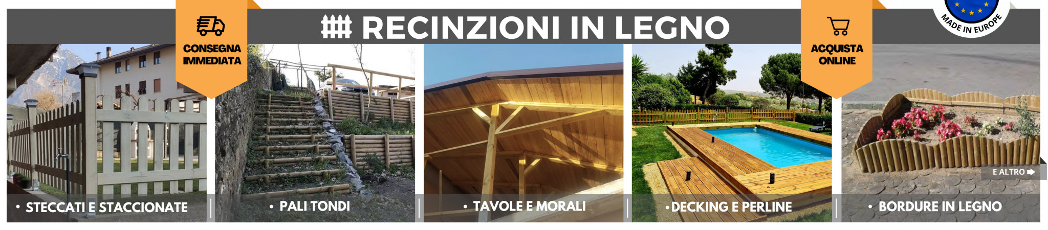 .Steccato in Legno di Pino con Doghe - Dimensioni: L 200cm x H 80cm