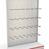 Nella sezione troverai scaffalature MURALI CON SCHIENALI FORATI E GANCI per appendere articoli blisterati e altri , gli scaffali sono divisi in sottocategorie in base ad altezza e profondita.