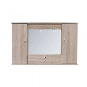Semplice e comodo mobile bagno pensile, dotato di 2 ante, una ribalta e uno specchio.