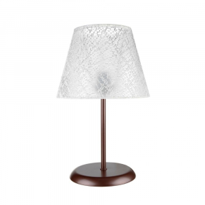 Lampada da tavolo in metallo e paralume tessuto ricamo Elva MNG3065