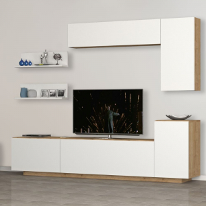 Parete attrezzata rovere e bianco da 200 cm. Kale