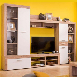 Parete attrezzata rovere bianco Liza 245x41,5x196 cm