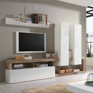 Il soggiorno Mogol è caratterizzato dal moderno design italiano. Una riuscita combinazione di colori con elementi bianchi, frontale in laccato lucido combinato con una cornice colore pero.