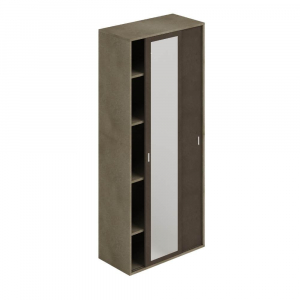 Armadio 212 due ante scorrevoli con specchio argilla fango con ripiani