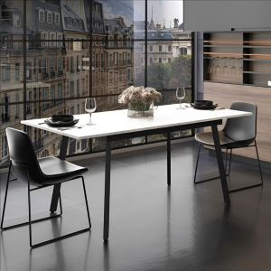 Tavolo allungabile Lini piano bianco e gambe in metallo nero