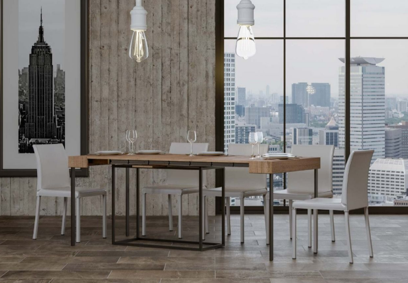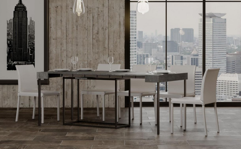 Una nuova consolle studiata per essere estremamente stabile, robusta ed elegante. La base in metallo, verniciata in color antracite, è la struttura portante di questa consolle. Usata come tavolo da pranzo, per la sua eccezionale stabilità può essere usato tranquillamente anche come tavolo da lavoro.