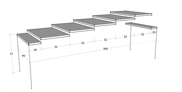 Dimensioni: L.90 x H.77 x P.40 (allungabile fino a 300) cm