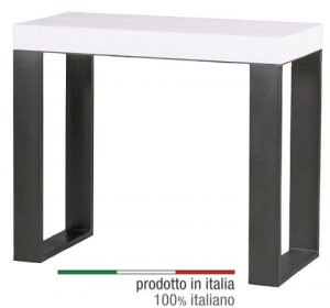 Tavolo / consolle allungabile modello Tecno, un concentrato di eleganza, stile, versatilità e design. In puro stile moderno, questa consolle può essere inserita in qualsiasi ambiente della casa, dall'ingresso alla camera da letto. La solidità della struttura il ferro con il piano in legno lavorato a Folding, rende la consolle robusta e stabile