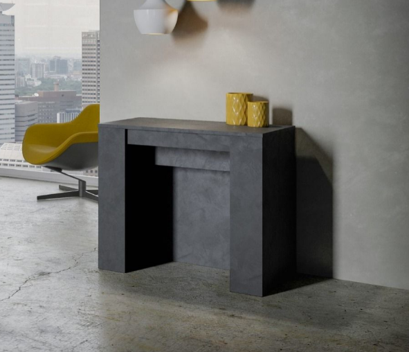 Consolle realizzata in nobilitato melaminico. Possibilità di scelta tra tre finiture, bianco frassino, noce e antracite spatolato.