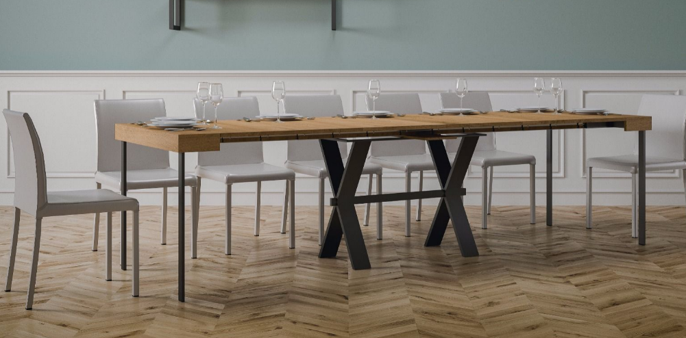 Perfetta per ogni ambiente e fondamentale per chi cerca la comodità di un tavolo allungabile pur avendo a disposizione uno spazio estremamente limitato. Inseribile in contesti classici e moderni. In poche e semplici mosse, la consolle Xenia si trasforma in un tavolo da pranzo abbastanza grande da ospitare comodamente 14 commensali. Un mobile di pregio ed elegante. L'ampio e solido telaio in metallo lavorato al pantografo ad alta precisione, costituisce la struttura portante della consolle stessa. Realizzata interamente in Italia mediante l'utilizzo di materiali 100% italiani.