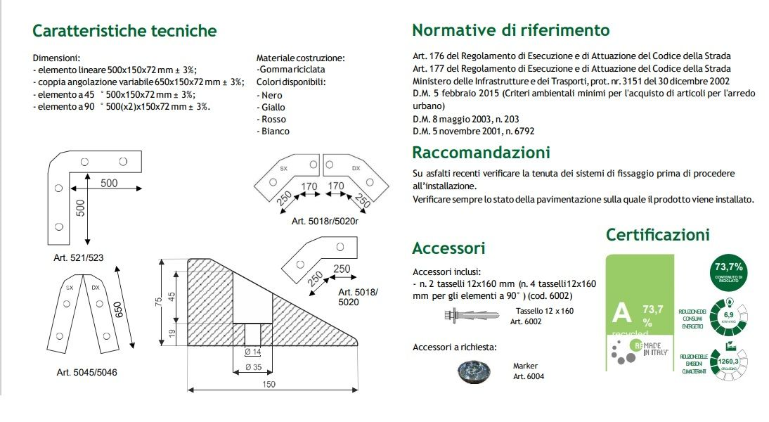Art. 176 del Regolamento di Esecuzione e di Attuazione del Codice della Strada Art. 177 del Regolamento di Esecuzione e di Attuazione del Codice della Strada Ministero delle Infrastrutture e dei Trasporti, prot. nr.3151 del 30 dicembre 2002 D.M. 5 Febbraio 2015 (Criteri ambientali minimi per l'acquisto di articoli per l'arredo urbano) D.M. 8 Maggio 2003, n. 203 D.M. 5 Novembre 2001, n.6792