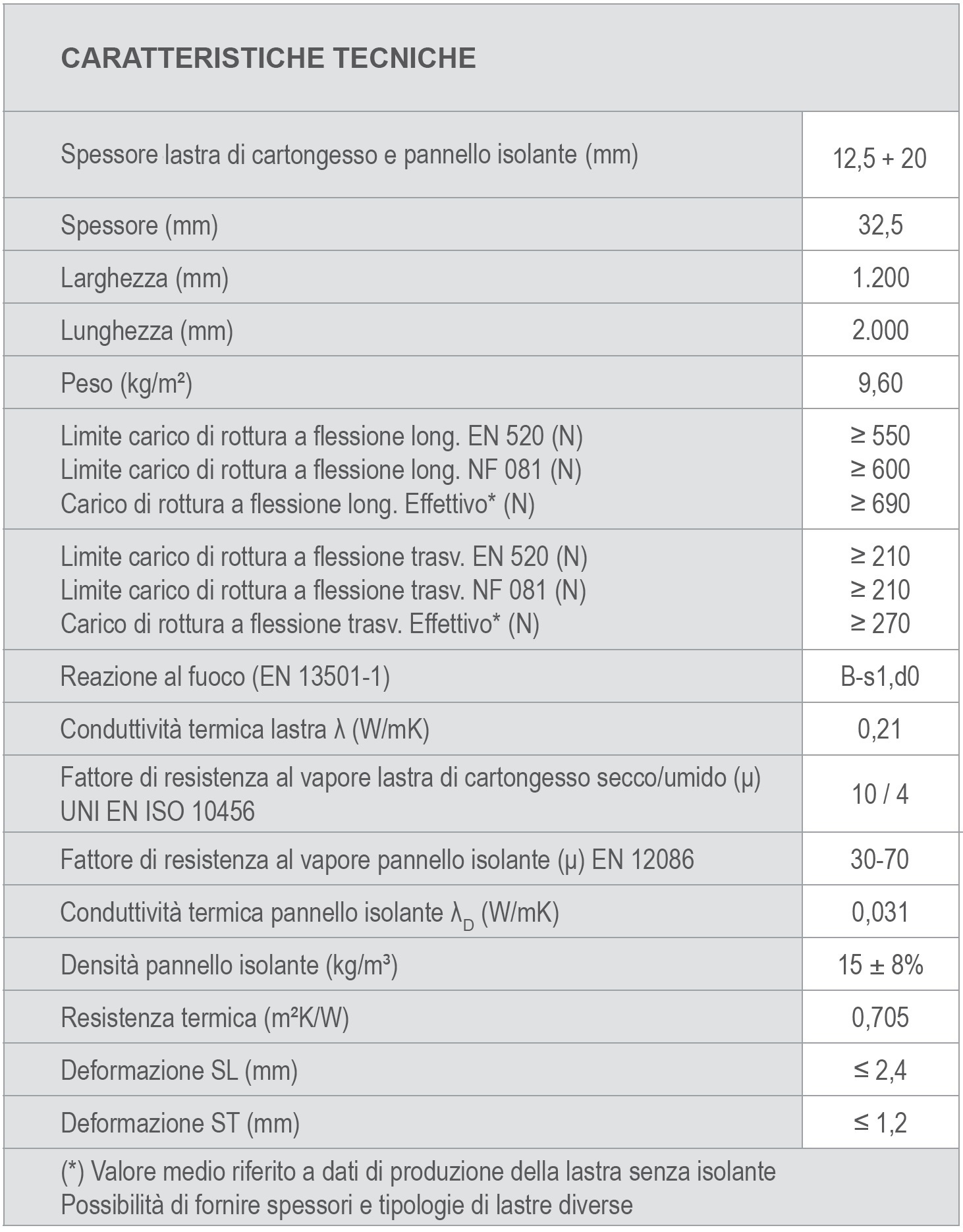 La lastra accoppiata per isolamento termico costituita da uno strato di gesso incorporato fra due fogli di cartone speciale ad alta resistenza e da un pannello di polistirene espanso sinterizzato, additivato con grafite.