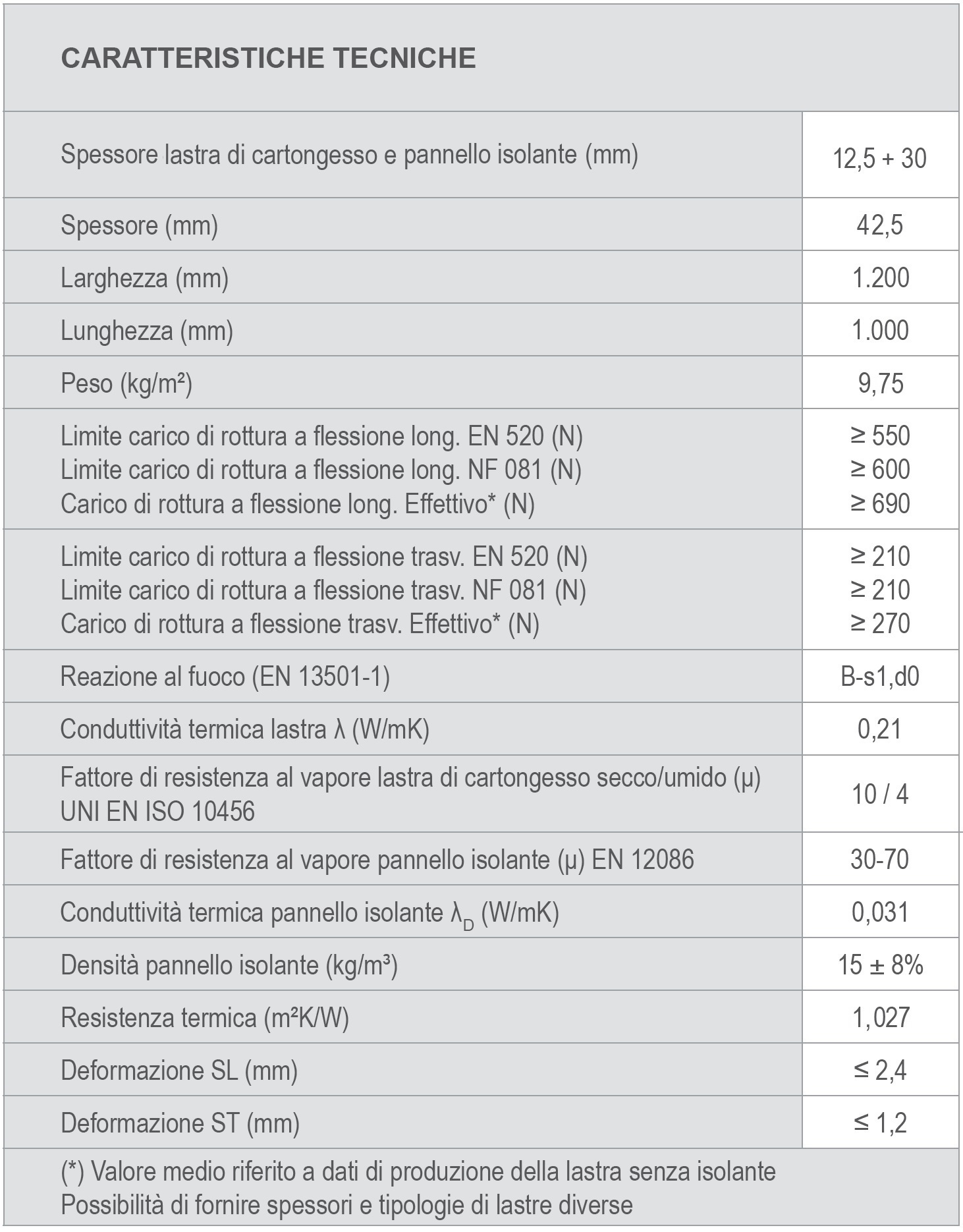 La lastra accoppiata per isolamento termico costituita da uno strato di gesso incorporato fra due fogli di cartone speciale ad alta resistenza e da un pannello di polistirene espanso sinterizzato, additivato con grafite.
