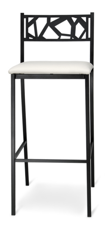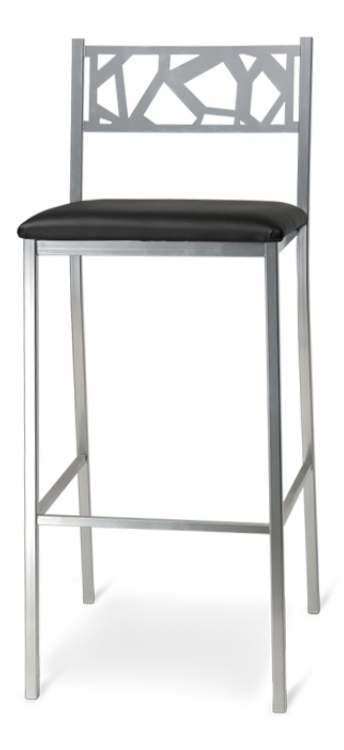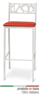 Sgabello in metallo con schienale in ferro laserizzato e seduta imbottita ecopelle,indicato per il ristorante e pub.