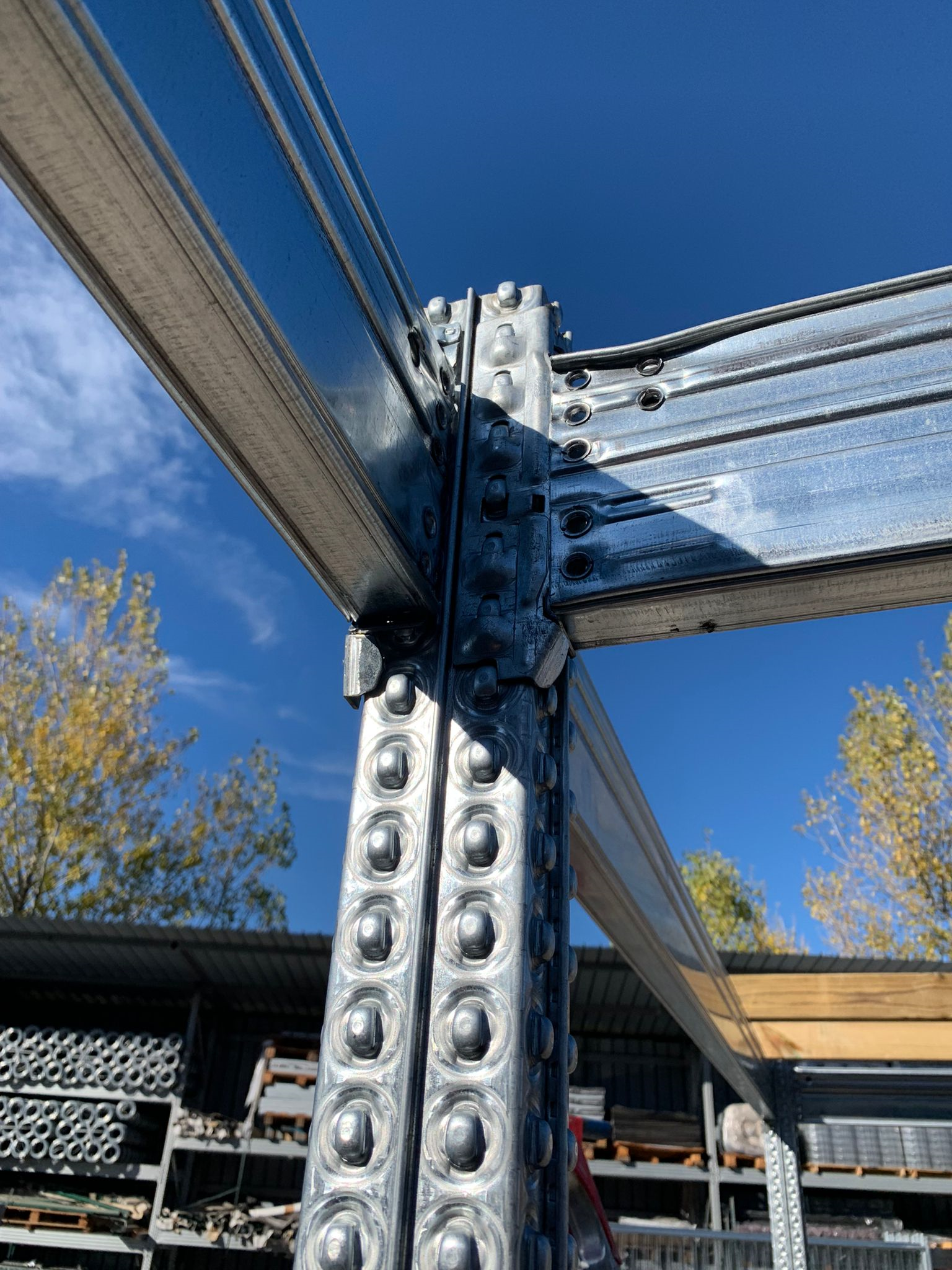 Struttara in fero realizzata con montanti tubolari in lamiera zincata e correnti superiori ad incastro, può essere senz'altro definita rivoluzionaria sia per le sue altissime prestazioni che per la sua semplicità di assemblaggio, gli stessi sono componenti utilizzati anche la costruzioni di portappallet e soppalchi.