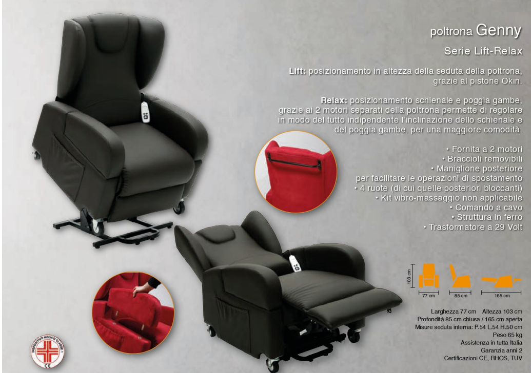 Le nostre poltrone sono detraibili fiscalmente in quanto Dispositivo Medico di classe I. Sono inoltre garantite per 2 anni e certificate CE, TUv e ROHS.