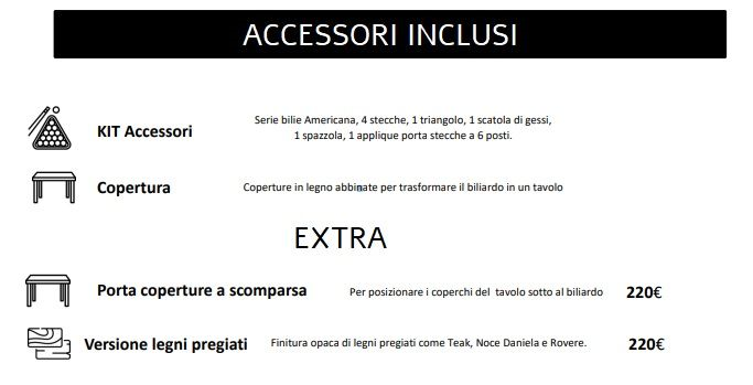 Biliardo di ottima manifattura , piano in ardesia da 250kg , sponda professionale triangolare , panno professionale , struttura e sponda in legno massello , telaio in acciaio. Il modello Imperial è studiato per trasformarsi facilmente in tavolo con la semplice aggiunta di tre coperture in legno ad incastro, potete quindi sfruttare al meglio questo fantastico prodotto.