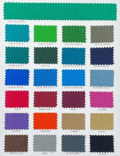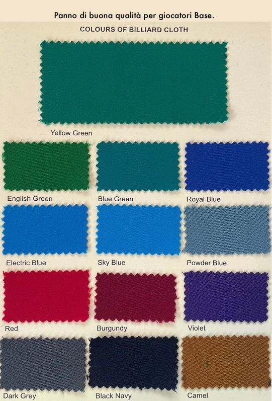 A richiesta è possibile scegliere il panno ad un colore diverso con un supplemento di €100.00 + IVA Di seguito i colori speciali :