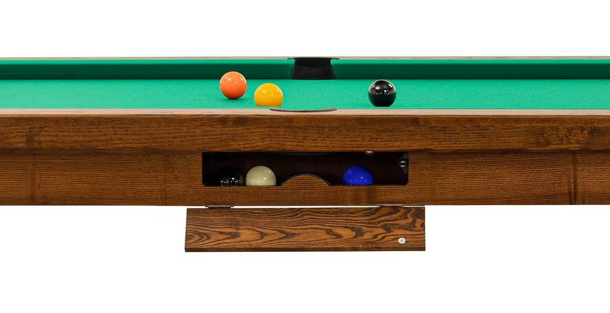 Campo gioco: 8ft (224cm x 112cm) Perimetro esterno: 254cm x 142cm Ampiezza stanza consigliata: 514cm x 402cm Ampiezza stanza minima: 424cm x 312cm (utilizzando stecche ridotte) Altezza con copertura: 81cm Colori Legno Telaio :