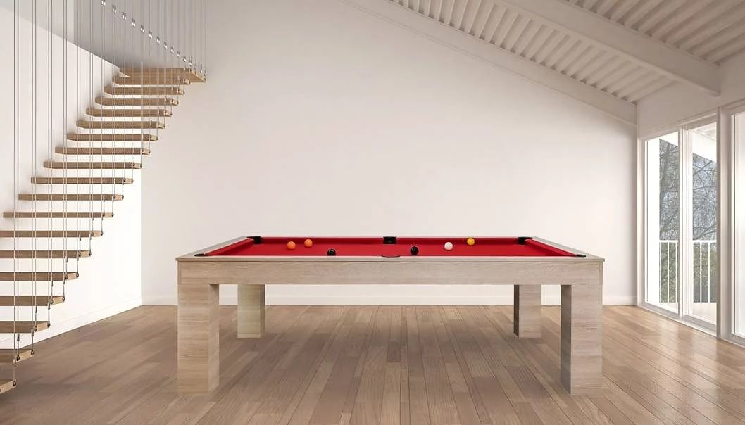 Biliardo di buona manifattura,piano in ardesia da 250kg,sponda professionale triangolare,panno professionale,struttura in massello di betulla e MDF,gamba rinforzata in metallo,rifinitura in speciale nobilitato antigraffio. Il modello Yankee è studiato per trasformarsi facilmente in tavolo con la semplice aggiunta di tre coperture in legno ad incastro, potete quindi sfruttare al meglio questo fantastico prodotto.