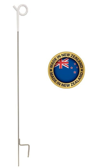 - Picchetto in robusto acciaio, rivestito di plastica, con isolare in plastica bianco stabilizzata ai raggi UV