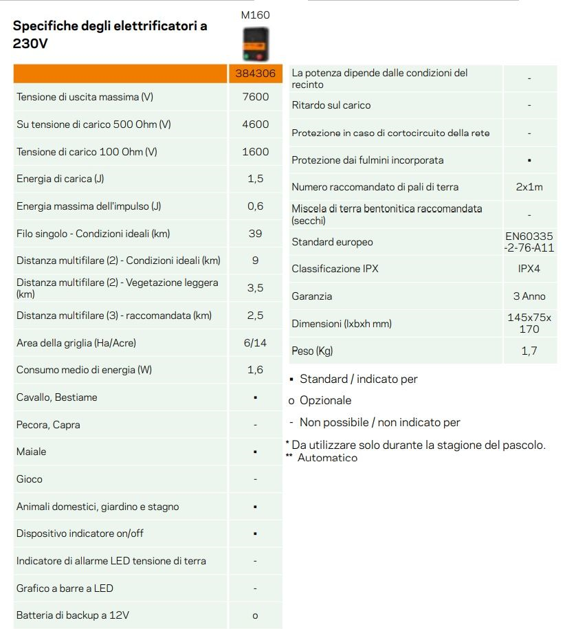 N.B. La flora ha una notevole influenza sulla massima lunghezza che un erogatore elettrico riesce a raggiungere sulla recinzione. Più vegetazione comporta più carica accumulata sul recinto, diminuendone la portata. Le indicazioni sulla lunghezza della recinzione si riferiscono a materiale (fili e connettori) con ottima conduzione,buoni isolatori,un sistema di messa a terra ottimale e scarsa vegetazione al suolo.