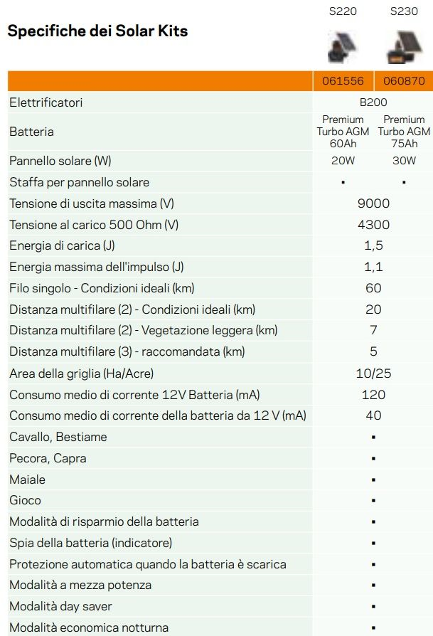 - Elettrificatore B200 da 1,45 J - Pannello solare 30 W - Batteria Premium Turbo AGM 75 Ah (caricata dal pannello solare)