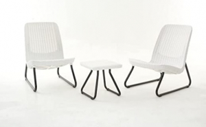 Set da terrazzo per interno/esterno ideale anche per giardini e spazi di intrattenimento. Elementi d'arredo eleganti e sofisticati, con trama piatta in stile rattan resistente e duratura.