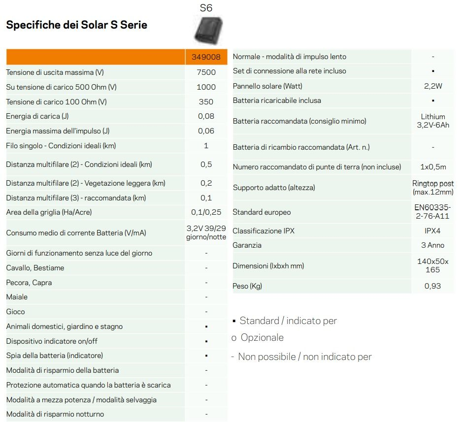 Potrete tenere gli animali indesiderati all’esterno del recinto contenendo i vostri animali domestici. L’S6 è una soluzione compatta, portatile e affidabile per la protezione a lungo termine del vostro giardino e dei vostri animali domestici. Una recinzione elettrificata costituisce una barriera sicura ed efficace per evitare che animali indesiderati entrino nel vostro giardino o che gli animali domestici escano da esso. Facile da installare e da mantenere. Soluzione perfetta per le recinzioni elettrificate nel settore dell'allevamento e della zootecnia, con un eccellente rapporto qualità-prezzo.