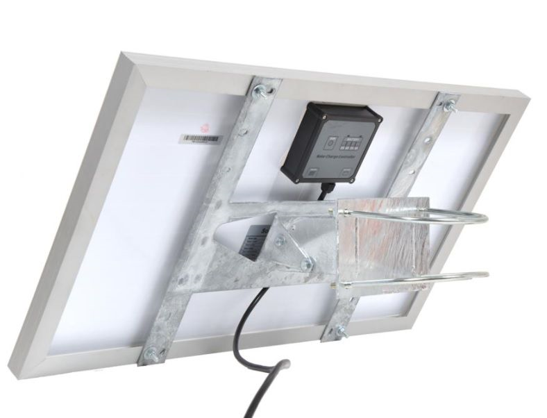Staffa per il montaggio di un pannello solare da 50/60W su una parete o su un alloggiamento antifurto. Soluzione perfetta per le recinzioni elettrificate nel settore dell'allevamento e della zootecnia, con un eccellente rapporto qualità-prezzo. Caratteristiche