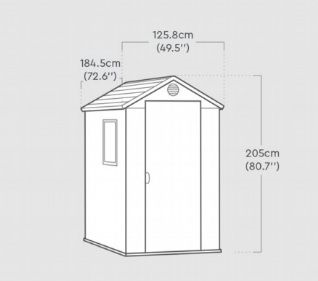 CASETTA CASETTA IN RESINA EFFETTO LEGNO NATURALE, PAVIMENTO INCLUSO, 1 PORTA, 1 FINESTRA LATERALE, BOCCHETTA D'AERAZIONE, PREDISPOSIZIONE PER LUCCHETTO, MONTAGGIO FACILE, ZERO MANUTENZIONE, IMBALLO 187x71x26,2H ADATTO ANCHE PER TRASPORTO CON L'AUTO - DIM.ESTERNE PRODOTTO 125,8x184,5x205,1h - MARRONE EFFETTO LEGNO NATURALE
