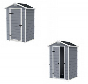 Queste casette da giardino sono dotate di caratteristica finitura effetto legno graffiato. Disponibili in due diverse colorazioni, sono dotate di una struttura con pareti a doppio strato, non richiedono praticamente alcuna manutenzione e sono resistenti ai raggi UV e alle intemperie.
