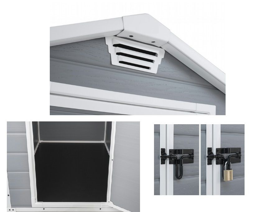 Questa linea di casette da giardino sono dotate di finitura effetto legno graffiato. Disponibili in due diverse colorazioni, sono dotate di una struttura con pareti a doppio strato, non richiedono praticamente alcuna manutenzione e sono resistenti ai raggi UV e alle intemperie.