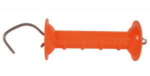 Robusta maniglia isolante per cancello. Larghi scudi protettivi per evitare scosse all’operatore. Molla e gancio resistenti a forti trazioni. Disponibile nei colori arancione o nero.