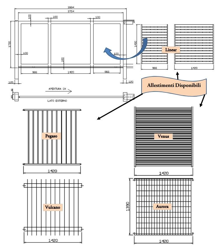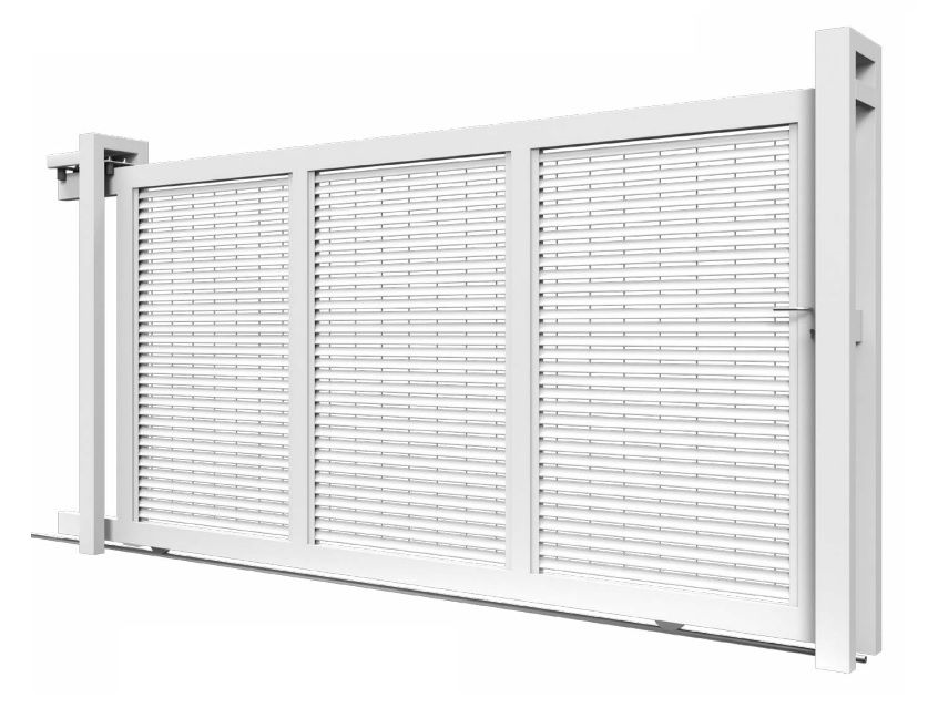 Le specchiature dei cancelli VENUS sono realizzate con profili orizzontali piegati a "Z". La proporzione ottimale tra pieni e vuoti garantisce un buon effetto oscurante, salvaguardando la leggerezza della soluzione.