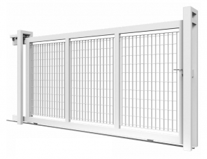 Cancello carraio scorrevole MADE IN ITALY. Il seguente prodotto appartiene ai cancelli modulari pronti in magazzino. Hanno il grande vantaggio di avere dimensioni e caratteristiche già definite, di agevolare le imprese, che posso predisporre a cantiere ancora aperto, tutte le fondamenta e gli accessori necessari. Non ci sono più inutili attese con possibili fermi cantiere. Il cancello quindi può essere montato con risparmio di costi e tempi senza rinunciare alla qualità che si conserva nel tempo.