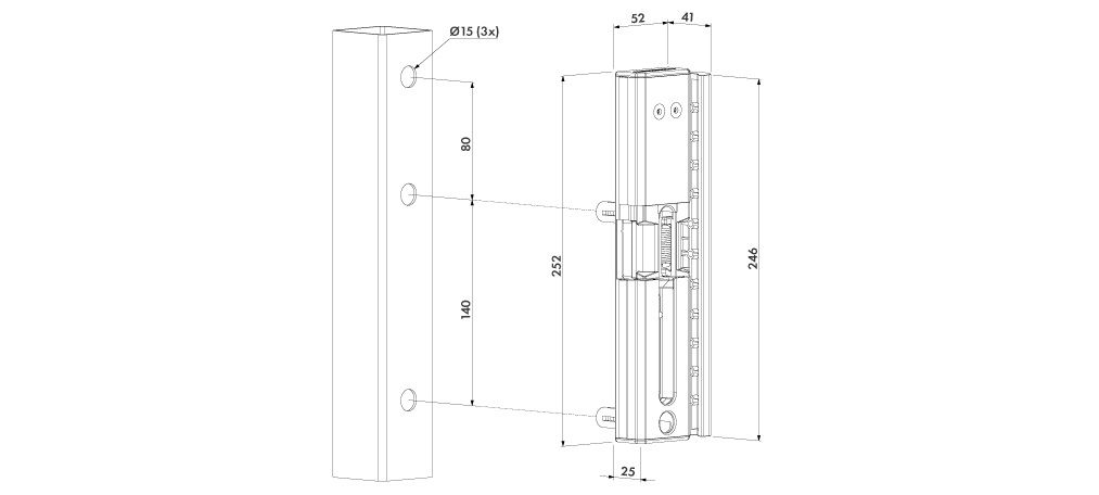 Incontro elettrico a montaggio superficiale di facile installazione con piastra di arresto ristretta per serrature a inserto. Grazie al Quick-Fix brevettato , è garantita una rapida installazione : niente più foratura o taglio laser del profilo del cancello . L'alloggiamento anodizzato nero garantisce un utilizzo senza corrosione e senza graffi per molti anni. Può essere collegato sia a 12 V - 24 V che AC/DC.