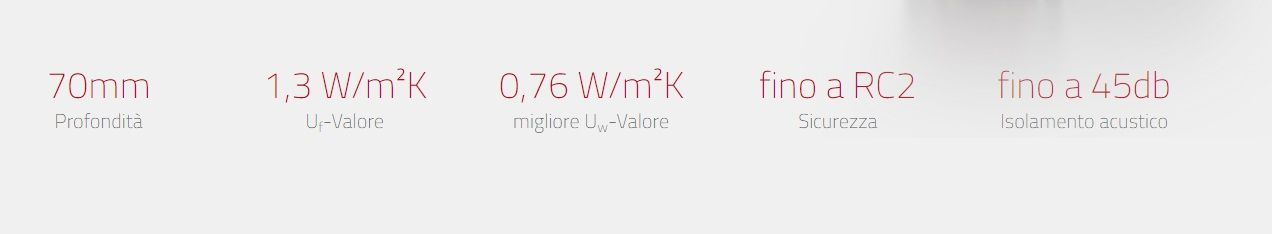 Gli infissi realizzati con questo sistema riuniscono la tecnica più moderna ed il massimo comfort abitativo. La solida costruzione dei profili dallo spessore di 70 mm e le grandi camere con i rinforzi in acciaio garantiscono ottimali parametri statici.
