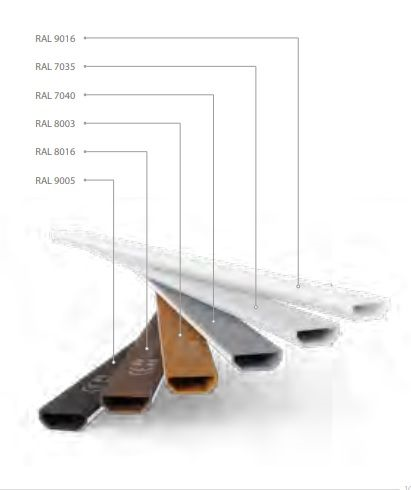 E' possibile sceglierla tra i seguenti colori : Grigio chiaro RAL 7035 , Grigio RAL 7040 , Marrone Chiaro RAL8003 , Marrone RAL8016 , Nero RAL9005 , Bianco RAL 9016.
