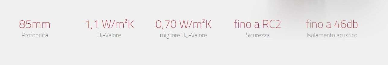 Gli infissi realizzati con questo sistema riuniscono la tecnica più moderna ed il massimo comfort abitativo. La solida costruzione dei profili dallo spessore di 70 mm e le grandi camere con i rinforzi in acciaio garantiscono ottimali parametri statici.