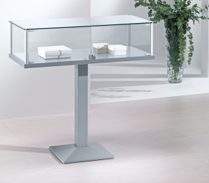 Vetrina con montanti in alluminio – cristalli temperati – no. 2 ante battenti con serratura – con piantana in metallo. Dimensione: 101x54xh103, peso 55 kg, colli 2