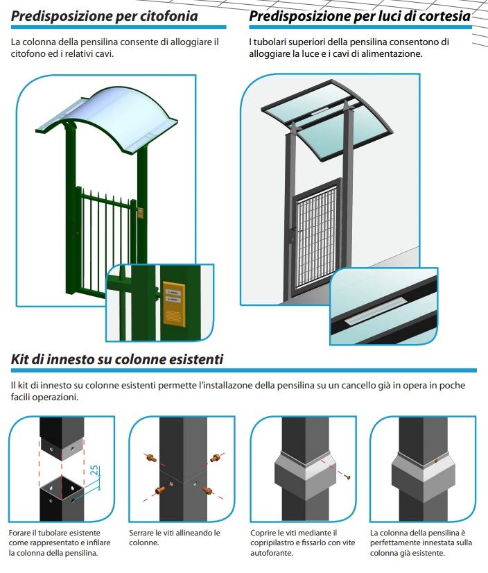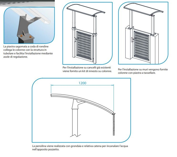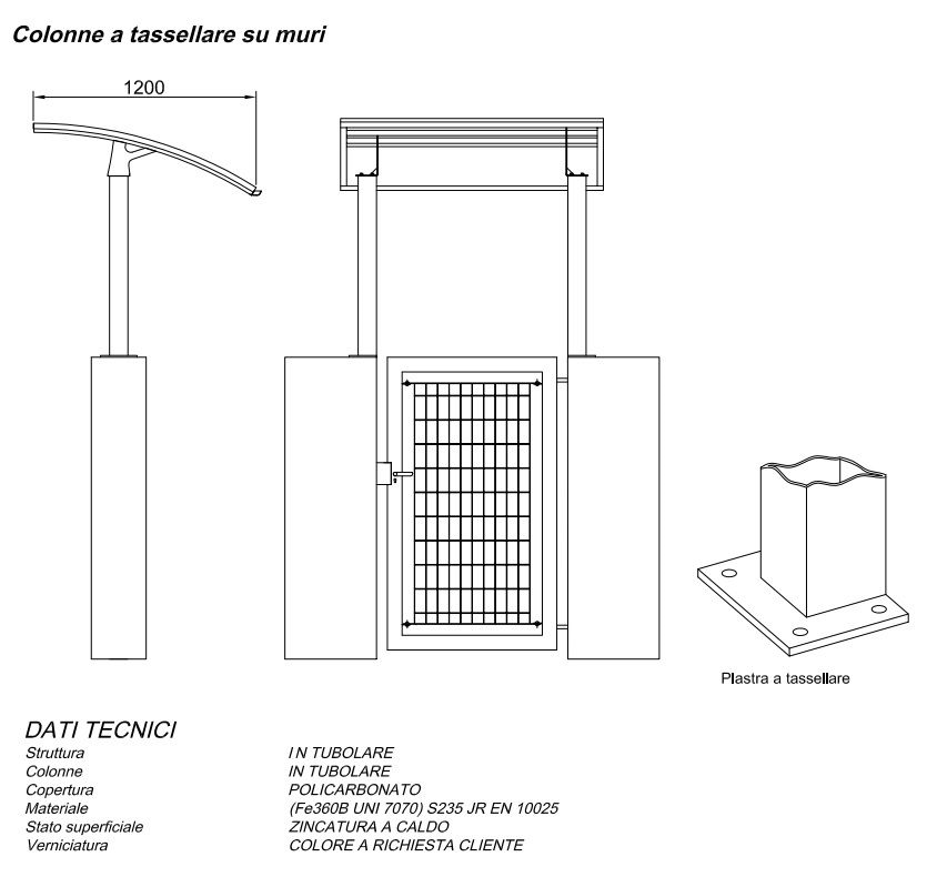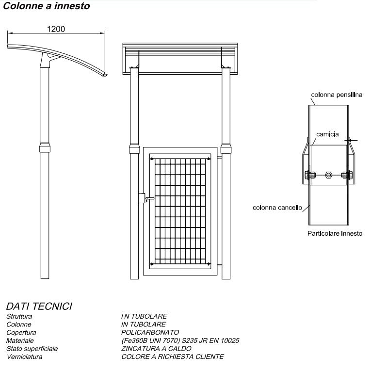 Pensilina Zincata per Cancello Pedonale Modello SOLAR2