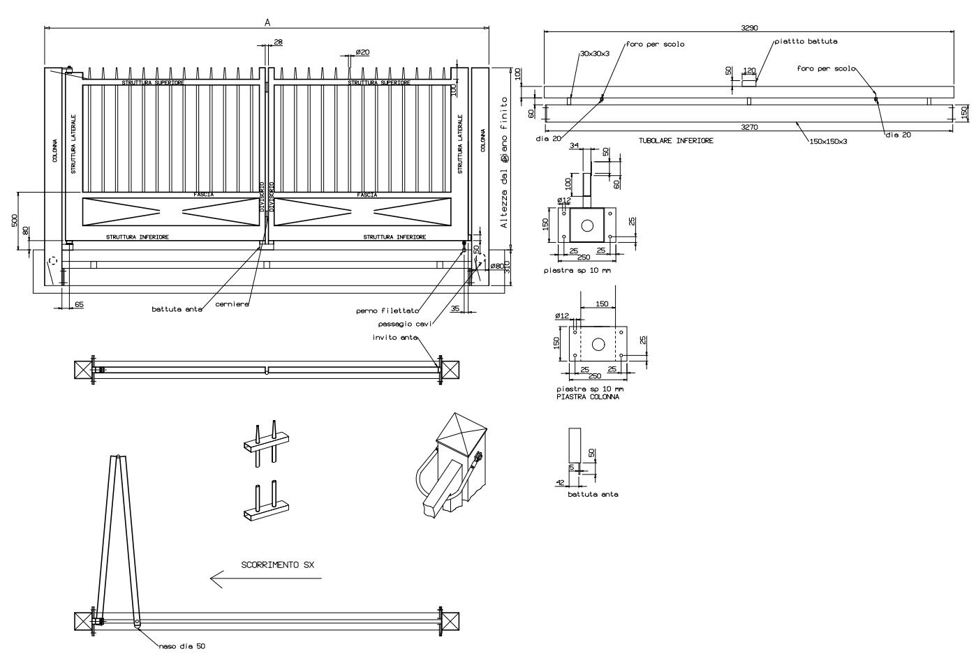 Struttura: in tubolare ( le misure dei pilastri varieranno in base alla misure del cancello )
