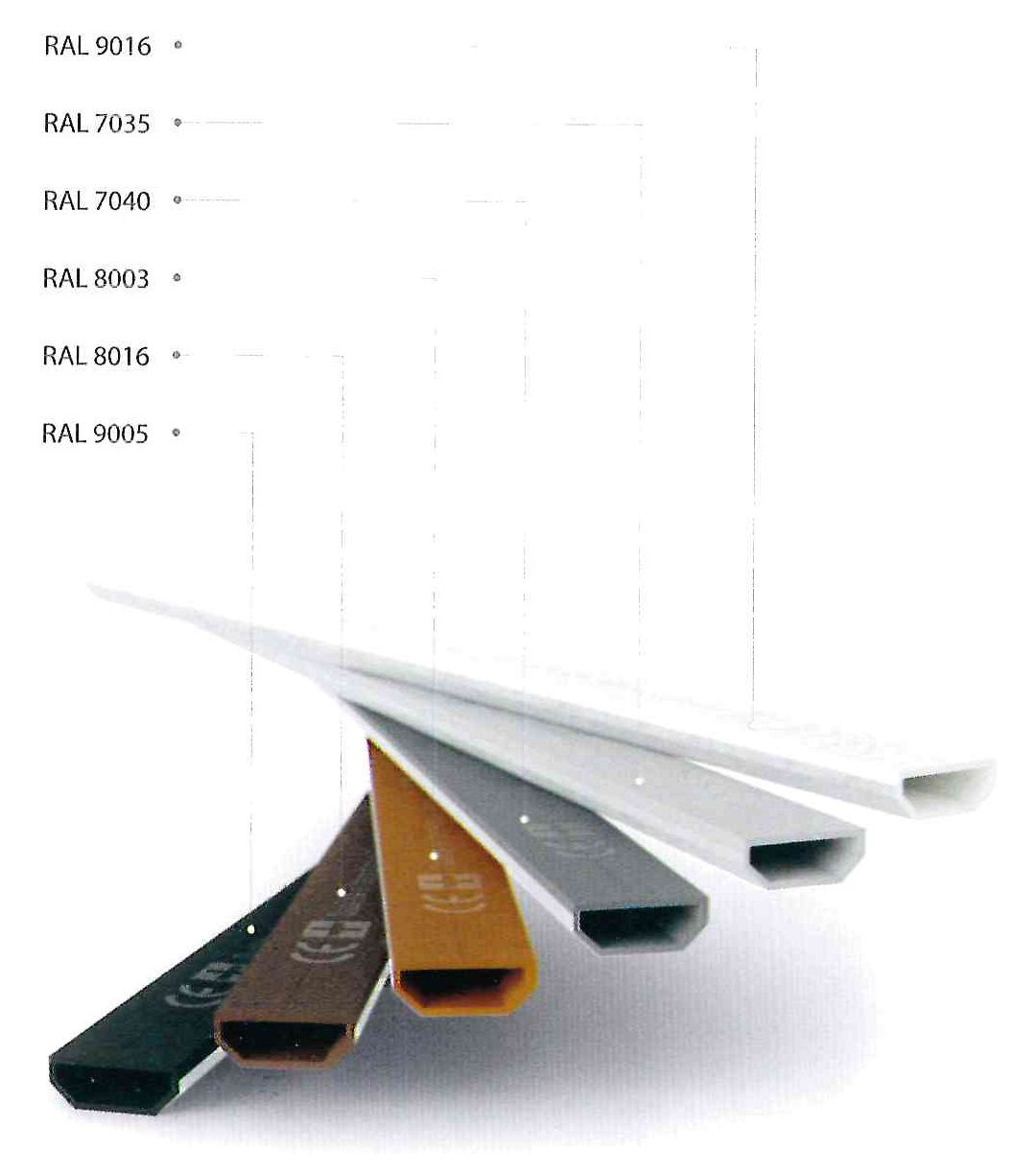 E' possibile sceglierla tra i seguenti colori : Grigio chiaro RAL 7035 , Grigio RAL 7040 , Marrone Chiaro RAL8003 , Marrone RAL8016 , Nero RAL9005 , Bianco RAL 9016.