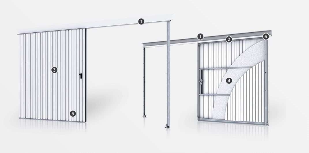 1. Protezione della guida di scorrimento alza i valori estetici e protege la guida di scorrimento dalla pioggia 2. Cuscinetti a rullo assicurano un funzionamento lungo e a basso rumore 3. Rivestimento fatto in lamiera profilata in acciaio a forma di trapezio T-10 , che garantisce la rigidità adeguata del rivestimento 4. Portone in versione coibendata può essere ordinato per migliorare le proprietà di isolamento termico dell'impianto 5. Griglie di aerazione montate nella parte inferiore del portone , garantiscono il flusso d'aria all'interno 6. Giunti a viti degli elementi di guida rendono il portone facile da regolare