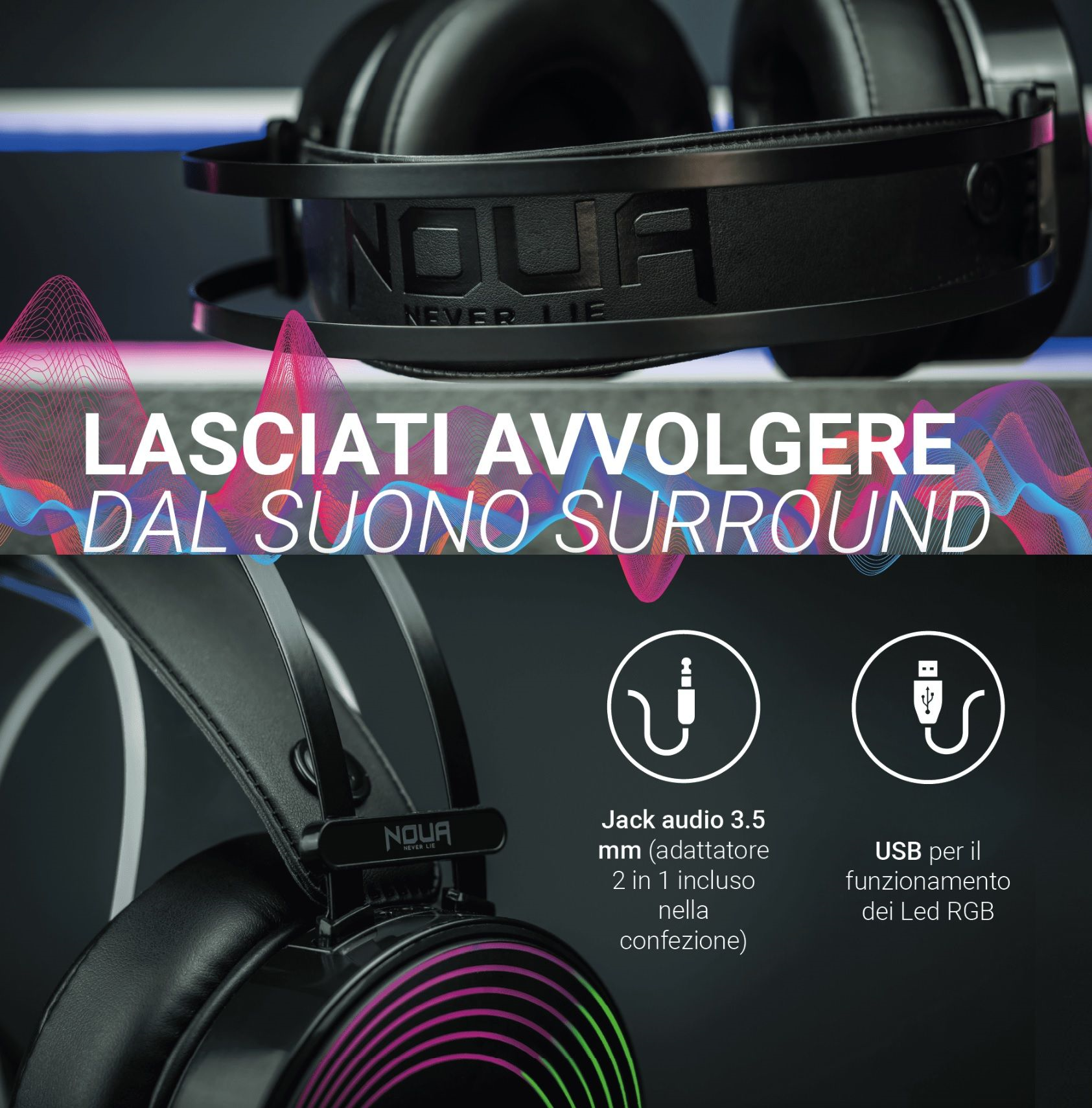 Cuffie Gaming NOUA CRUX USB/Jack 3,5 mm con Microfono Flessibile & Illuminazione RGB