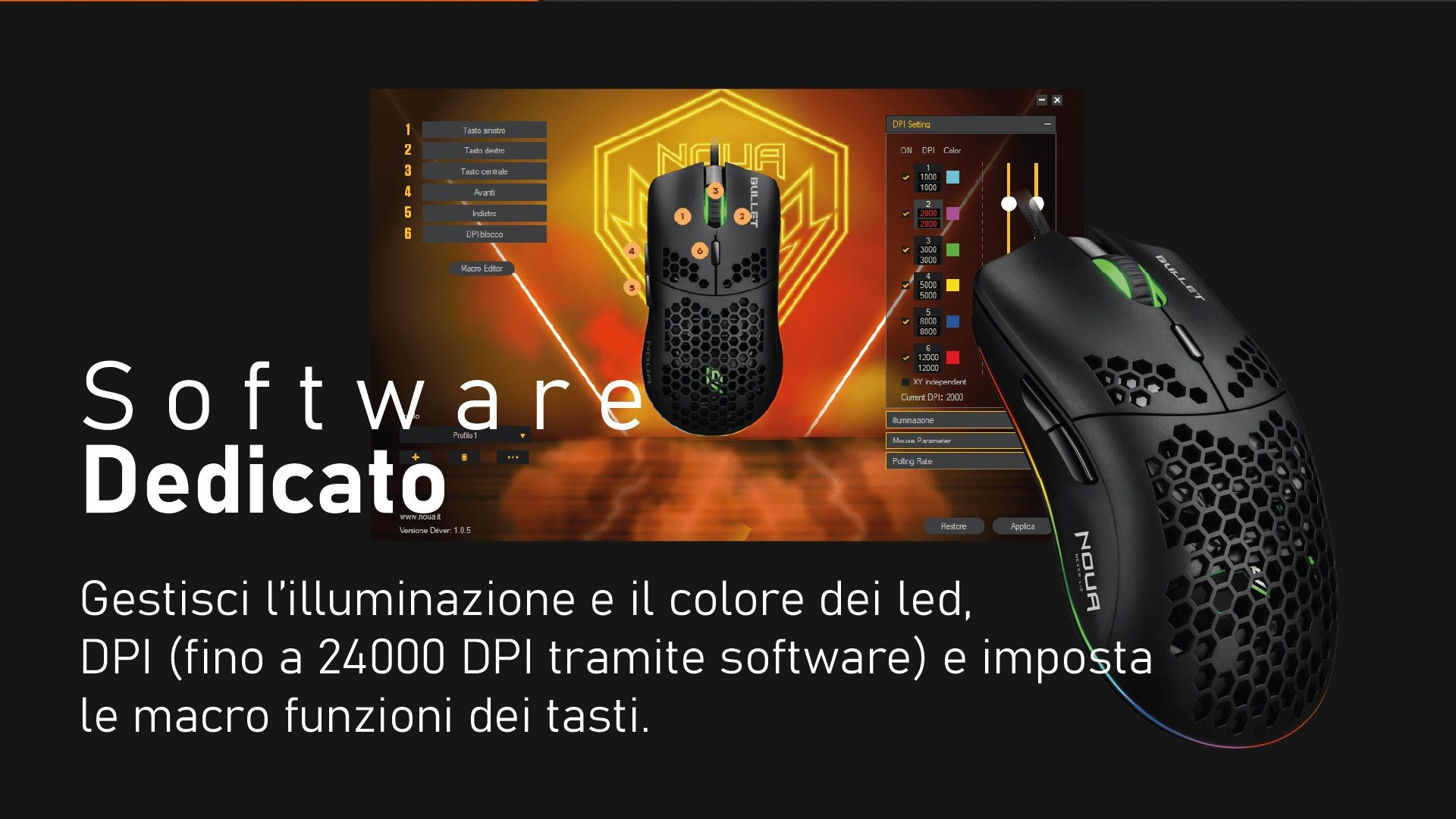 Mouse Gaming Ottico USB NOUA BULLET RGB Pixart 3360 7 Tasti Programmabili con Skin in Silicone