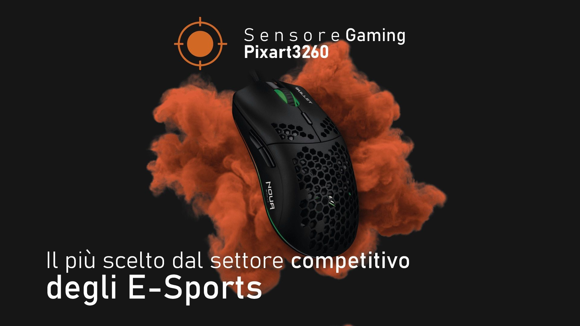 Lo standard competitivo del settore degli e-sports. Tracciamento perfetto dei pixel, accelerazione del mouse zero, niente più spinout, frequenza di polling di 1000 Hz.