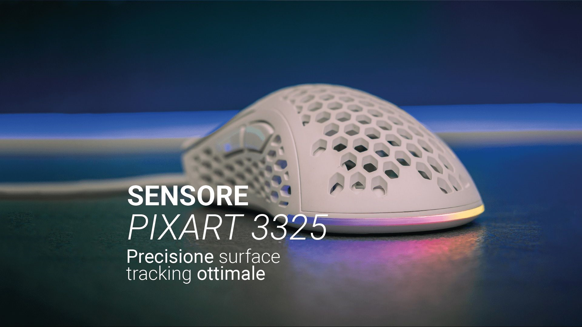 Caratterizzato da 6 livelli DPI: 1000,2000,3000,4000,5000,10000. Tracciamento perfetto dei pixel, accelerazione del mouse zero, frequenza di polling di 1000 Hz.