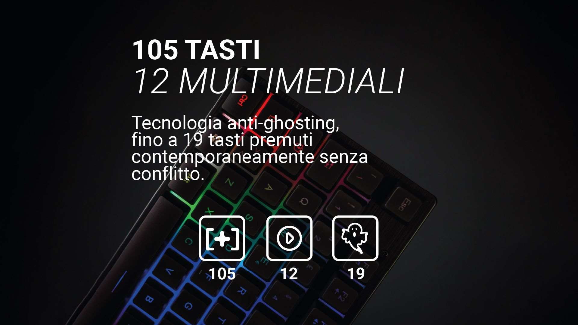 Tastiera Gaming NOUA SHIELD RGB Membranical 105 Tasti Layout IT